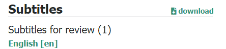 The subtitle page opens, and from the subtitle page you can download the subtitles, compare revisions, edit the subtitles, and follow the subtitle set for updates.